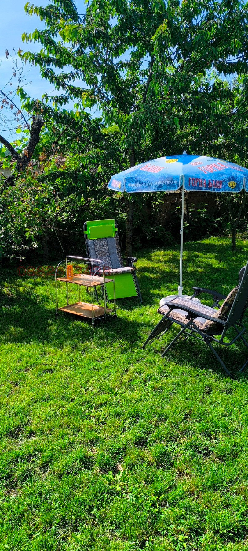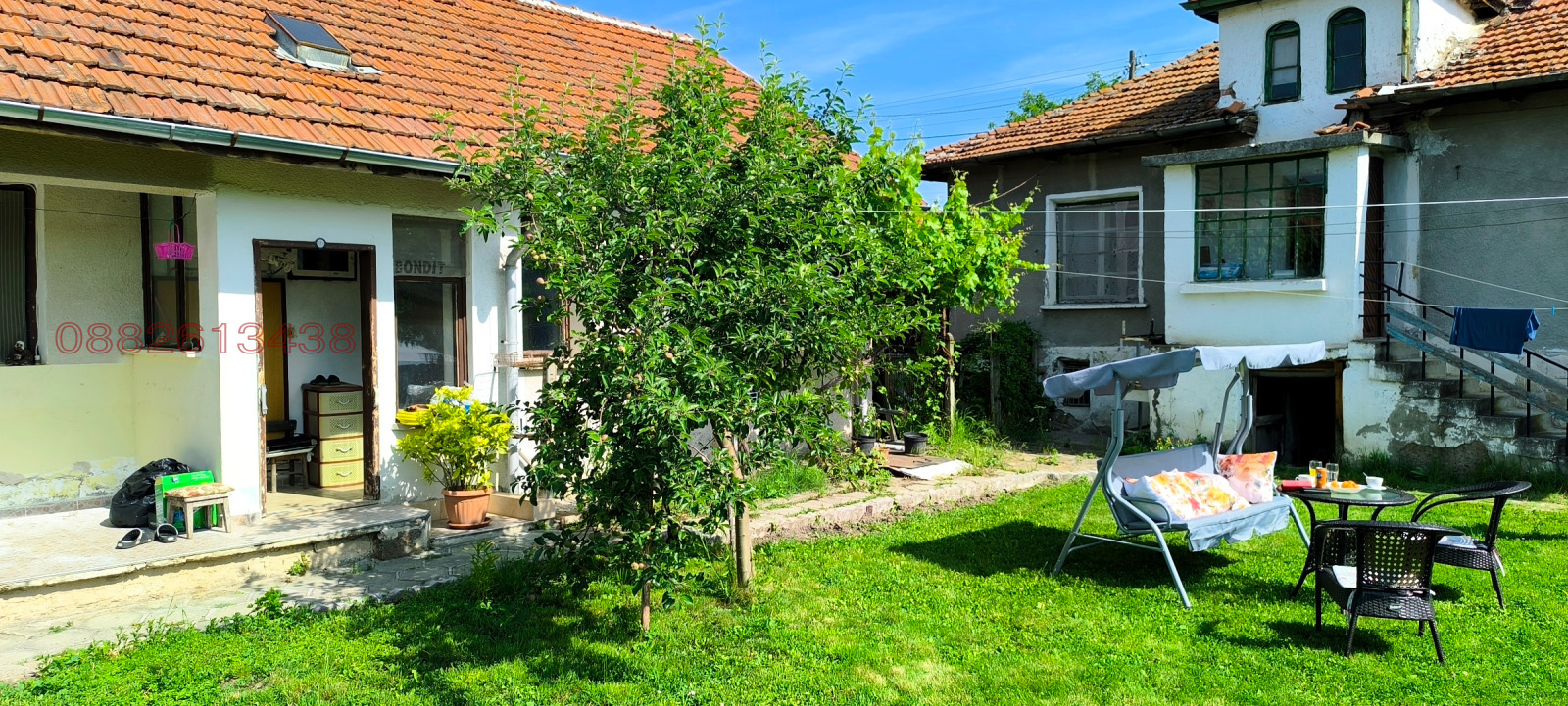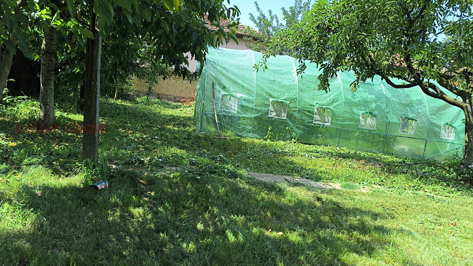 Към нея е залепен гараж 24 кв.м.от тухла и стомана бетон.Дворът е с южно изложение равен с правилна форма.Има много овощни дръвчета тревни площи и обработваема площ с парник,кокошарник и др.