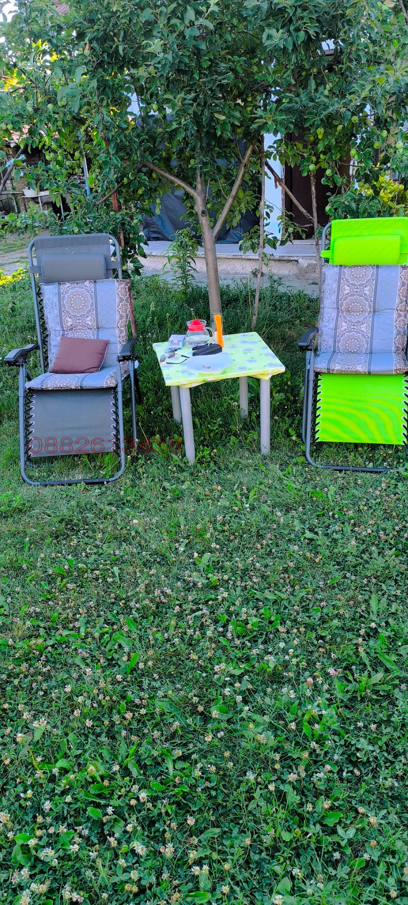 Състо и се отспалня, дневна с кухня ,баня с тоалетна.изцяло изолирана от във и от вътре ПВЦ и алуминиева дограма, стъклопакет 4 сезона.Тераса ,площадка от гранитогрес с беседка/шатра . Обзавен със всички необходимо.