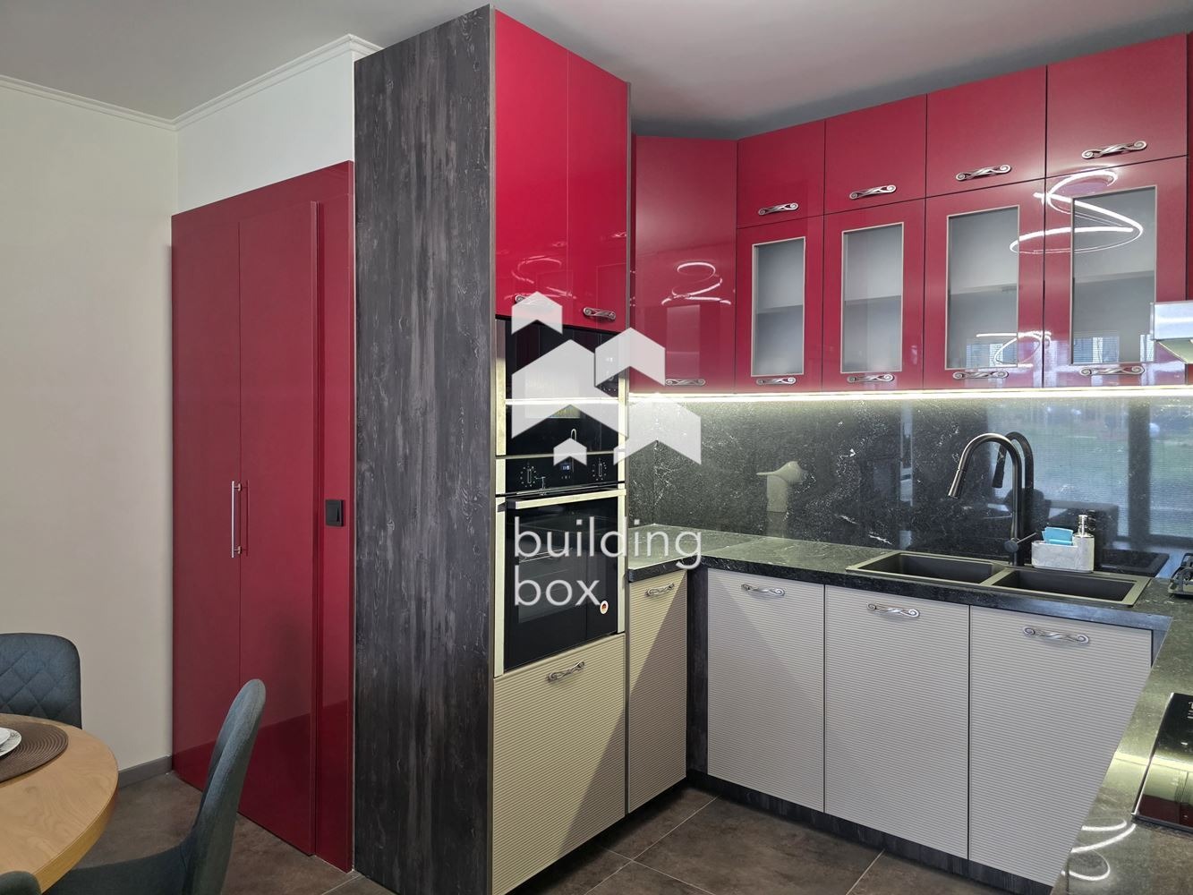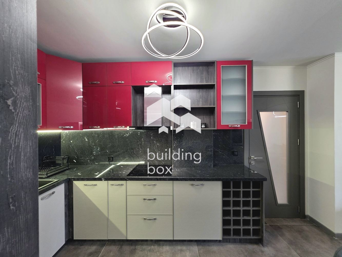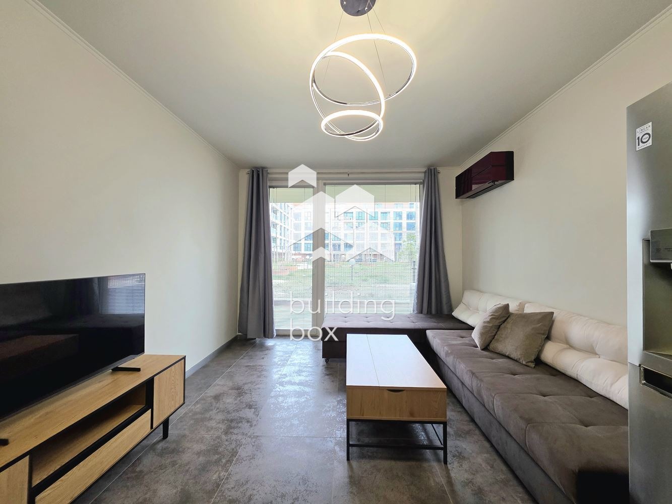 Билдинг Бокс предлага под наем двустаен, отлично завършен апартамент със собствен двор, находящ се в комплекс от затворен тип - Далия Резидънс.