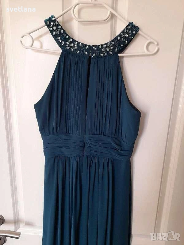 Дълга рокля на марката Jake's в синьо-зелен цвят. Подходяща за S-M размер, носена веднъж за повод.