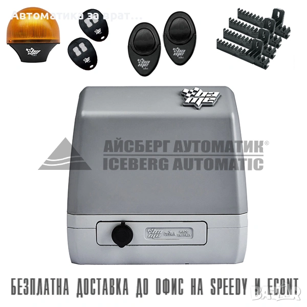 Пълен Комплект автоматика за плъзгащи врати до 600кг с 2 дистанционни, лампа, фотоклетки и 4м. рейки