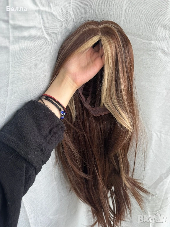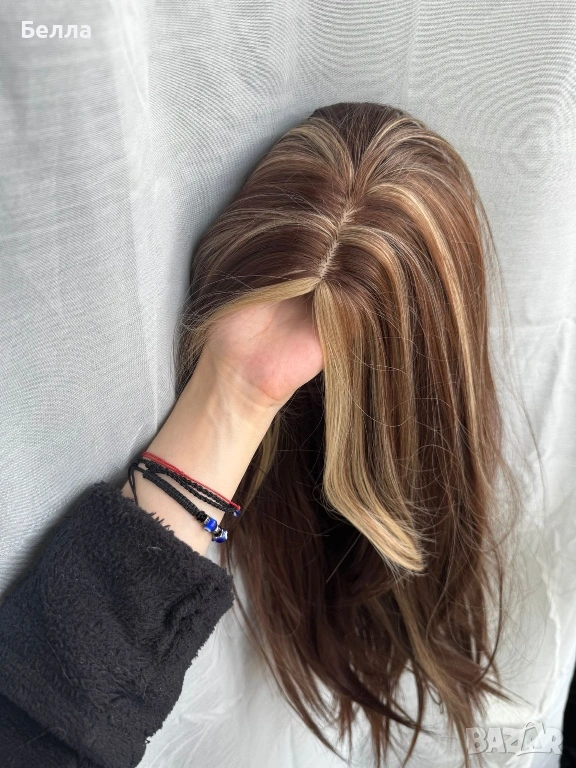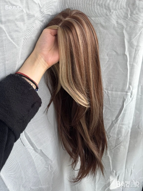 НОВА Кафява естествена перука! 100% високо качество → Обява 54083763
