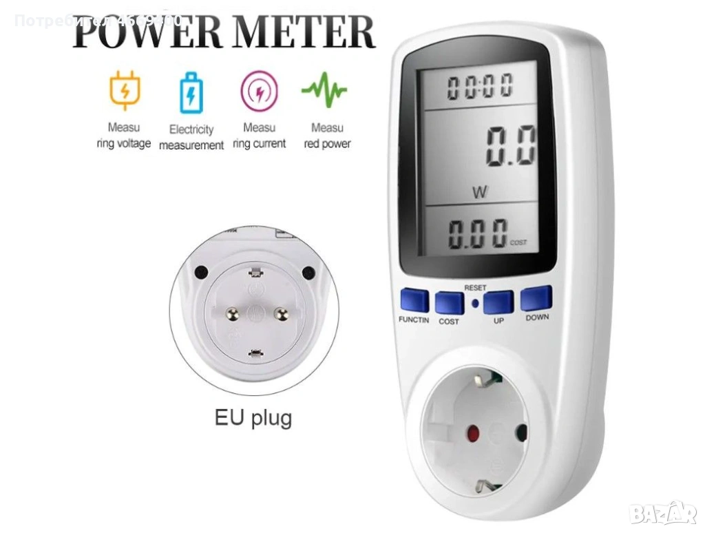 Цифров измервател на мощност EU Контакт, снимка 1 - Други - 54083779 Цифров измервател на мощност EU Контакт, снимка 2 - Други - 54083779 Цифров измервател на мощност EU Контакт, снимка 3 - Други - 54083779 1/3