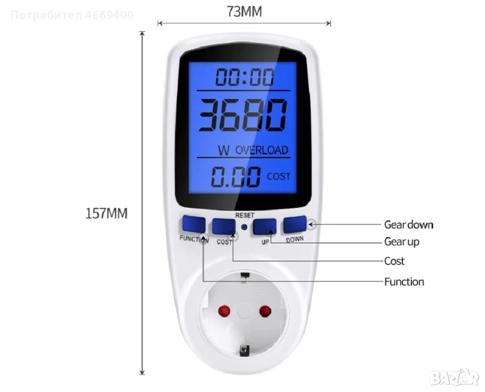 • Лесен за използване: Просто включете измервателния уред и започнете да следите консумацията на енергия веднага.