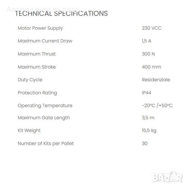 Пълен Комплект Автоматика за двукрили врати на панти с широчина на крилото до 3,5 метра Italy → Обява 54083803