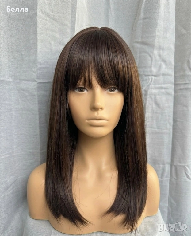 НОВА Кафява естествена перука! 100% високо качество → Обява 54083863