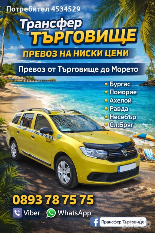 Превоз от Търговище до: Бургас Поморие Ахелой Равда Несебър Сл.Бряг Св.Влас → Обява 54083893
