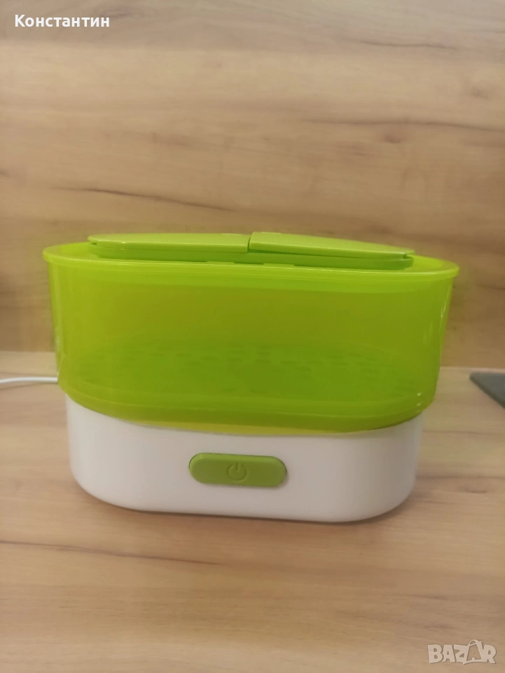 Информация за продукта Описание 3в1 Електрически парен стерилизатор с функции за готвене на пара и затопляне на шишета. Характеристики: • Бързо затопляне на всякакви размери и марки бебешки шишета, както и бурканчетата с бебешка храна. • С голяма вместимост за стерилизиране на 6 шишета със стандартно гърло или 4 шишета с широко гърло; • Стойки за шишетата на дъното на основното тяло на стерилизатора; • Регулиране на времето за стерилизация от 6 до 30 минути чрез количеството на водата в уреда - 80ml-200ml; • Стерилизиране на бебешки шишета и малки аксесоари едновременно или отделно; • Продуктът е на само с функцията за стерилизация на бебешки шишета и аксесоари, но и за затопляне на мляко и варене на пара на плодове, зеленчуци и яйца (вместимост 6 яйца); • Затопляне на две шишета едновременно; • Бърз и лесен за употреба; • Механичен бутон за включване/ изключване на уреда; • Индикаторна светлина; • Автоматично изключване, предпазващо уреда от прегряване; • Прозрачен капак от високо качество, позволяващ наблюдение на процеса на стерилизация/ готвене на пара; • Всяка една от кошничките може да се сваля и използва отделно от другите или заедно в различни комбинации; • В комплекта има включени и измервателна чашка и щипка за шишета/ аксесоари; • Гумени крачета на основата на стерилизатора за по-голяма стабилност; • Технически спецификации: 220V/50HZ; 550W; • Запазване на предметите стерилни за 8 часа, ако не се отваря капака.