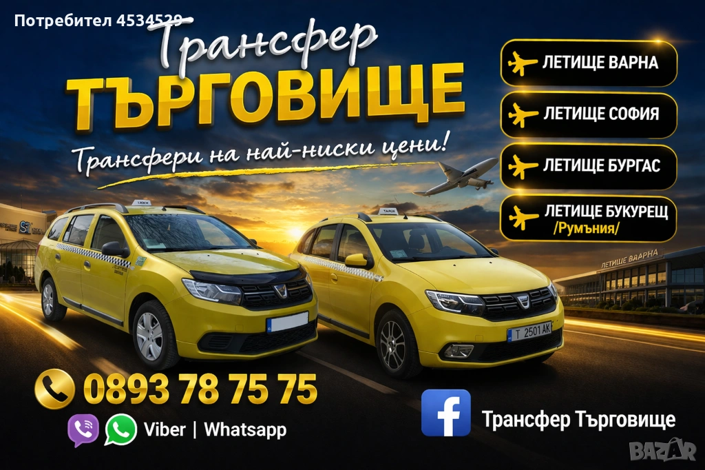 Превоз от Търговище до всички градове и летища в България → Обява 54083939