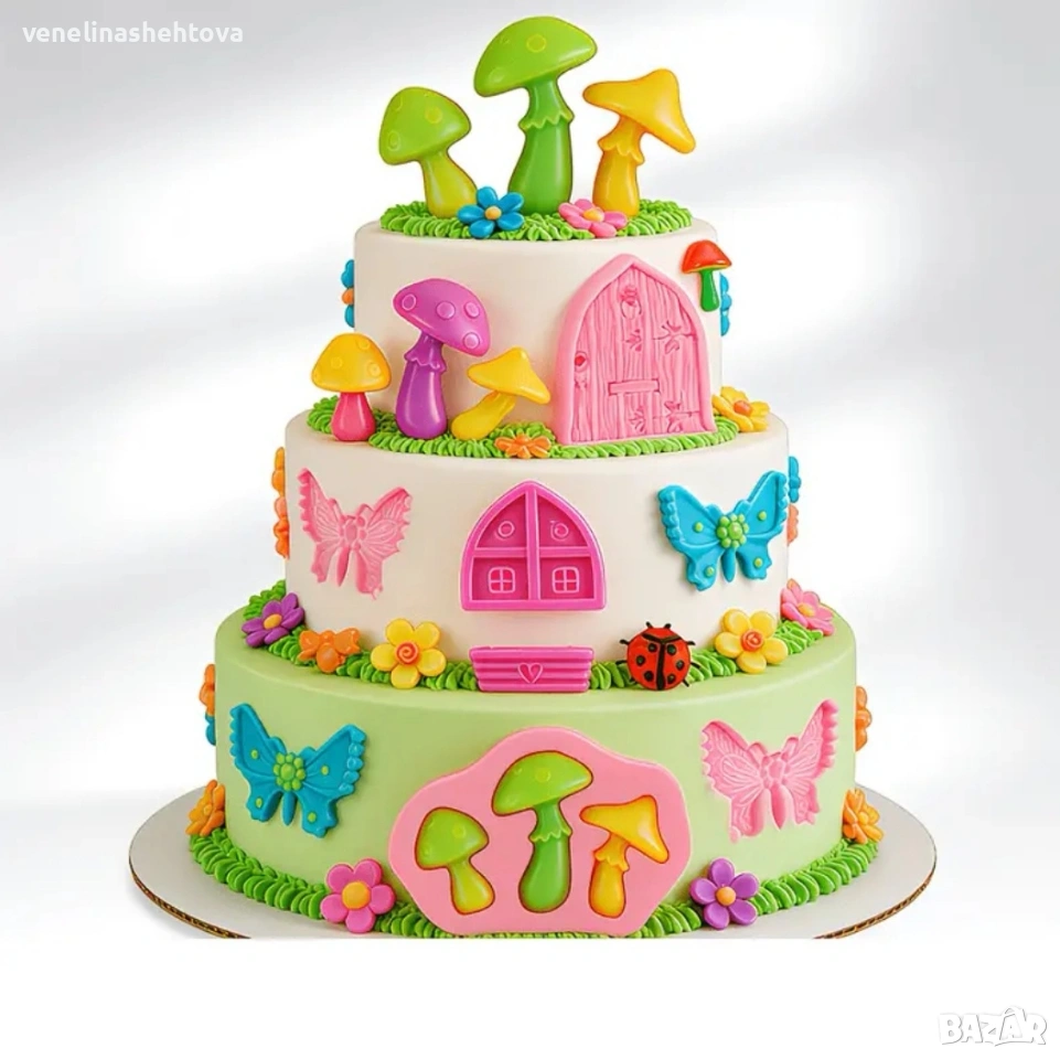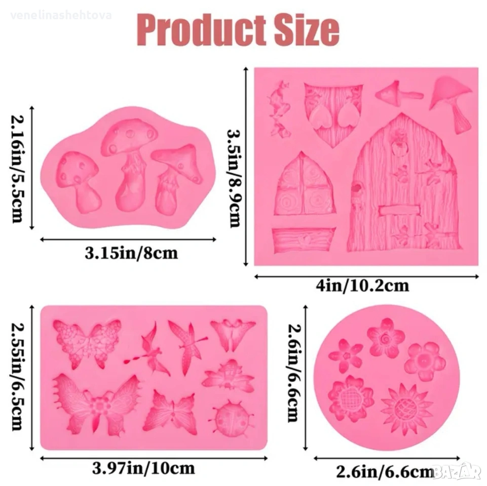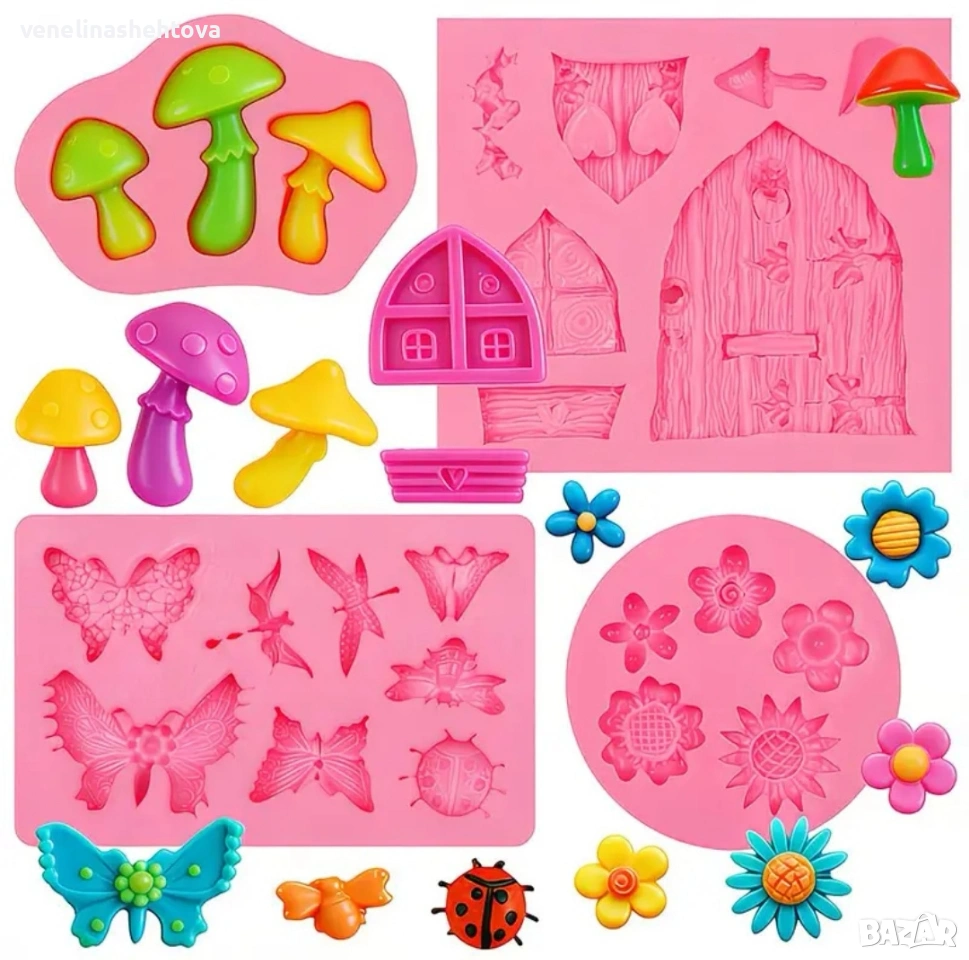 4 броя комплект врата прозорец гъбки пеперуди цветя силиконов молд гипс фондан декорация торта → Обява 54083976