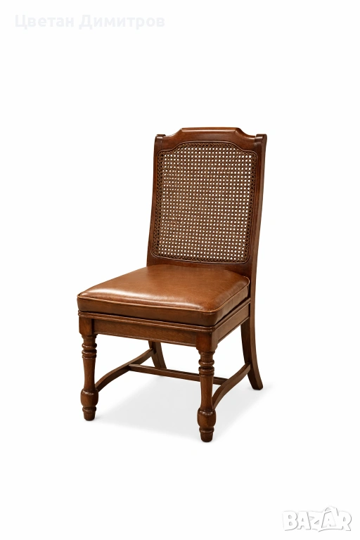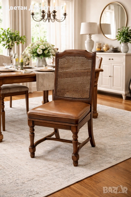 Винтидж дъбови холандски трапезни столове, естествена кожа → Обява 54084024