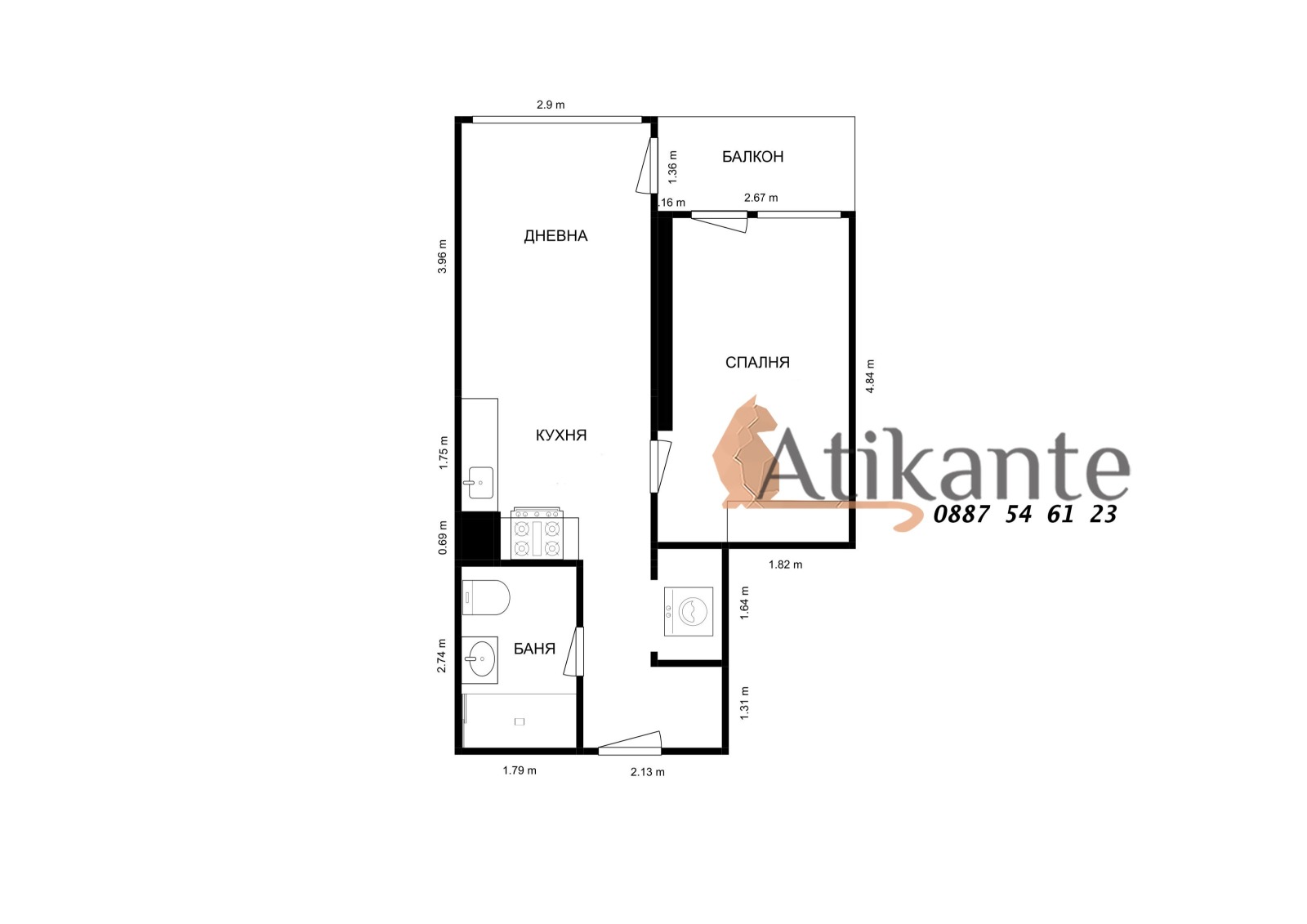 дневна с напълно оборудван кухненски бокс и излаз към тераса