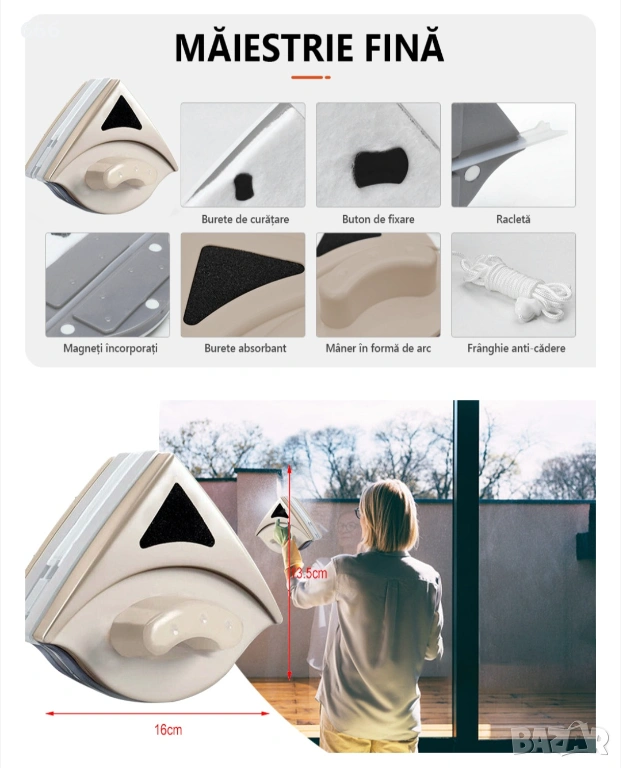Този инструмент за почистване на стъкло използва силен магнитен и анти-автомобилен дизайн на лентата за чистачки, който може ефективно да почиства двете страни на стъклото в