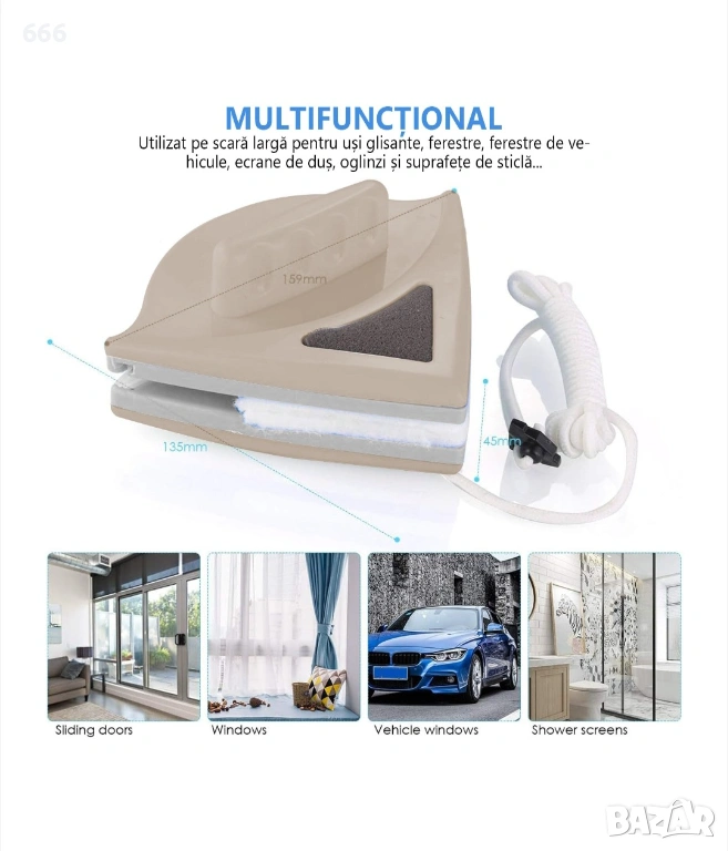 【Магнит за почистване на прозорци 3-26 мм стъкло и обезопасително въже】