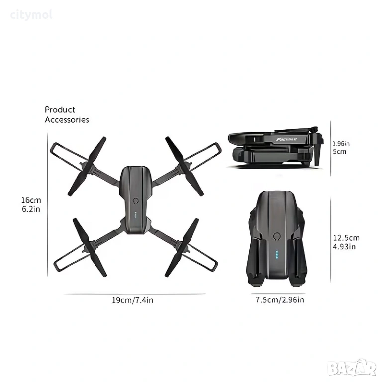 Сгъваем дрон – Сгънете перките и четирите рамена за лесно съхранение и транспортиране.