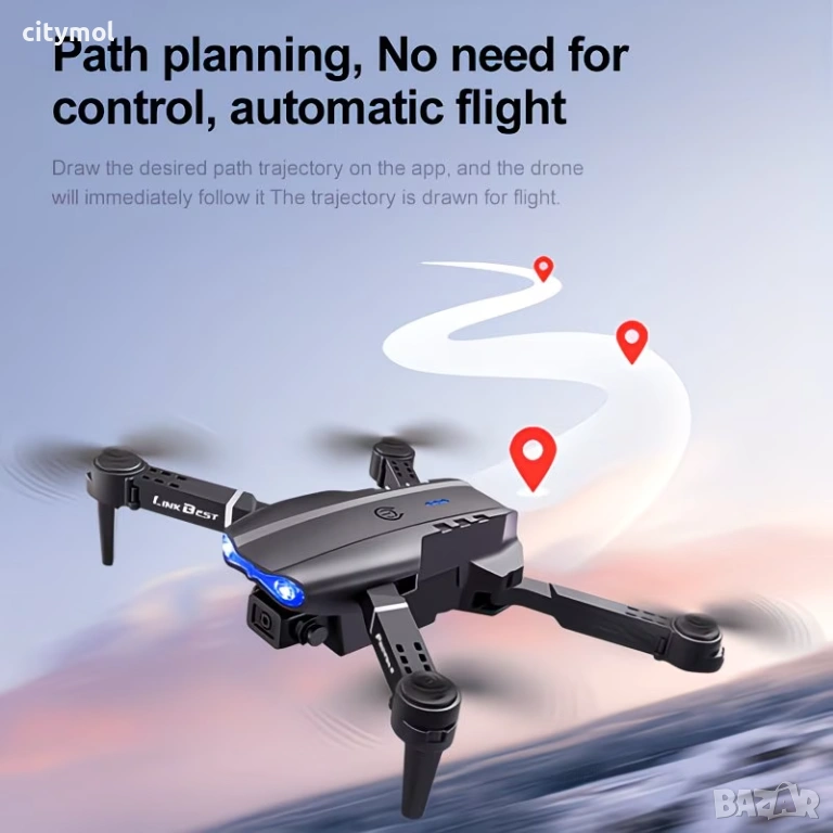 Режим без глава – Можете да летите с дрона с дистанционното управление като централна точка, без да се нуждаете от подробни указания, което прави операцията на полета много по-лесна и по-удобна, а загубата на дрона е много трудна.