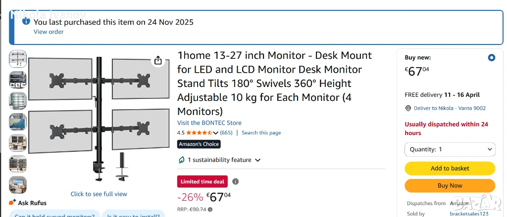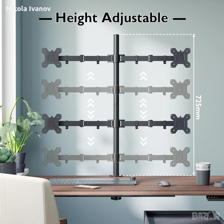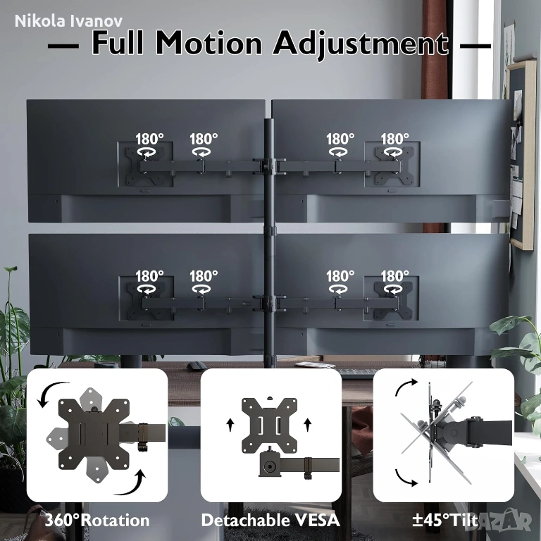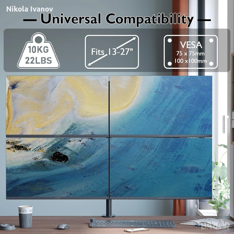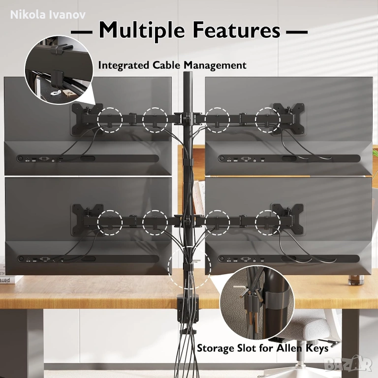Съвместимост: Поддържа 4 монитора с размер от 13 до 27 инча.