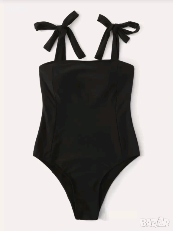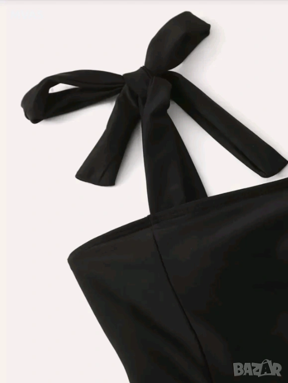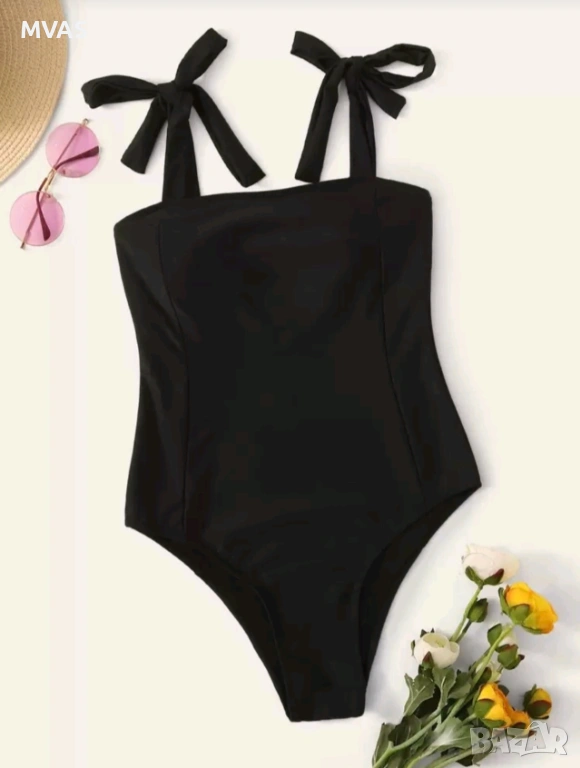 Нов дамски черен цял бански с връзки панделки М размер → Обява 54084351