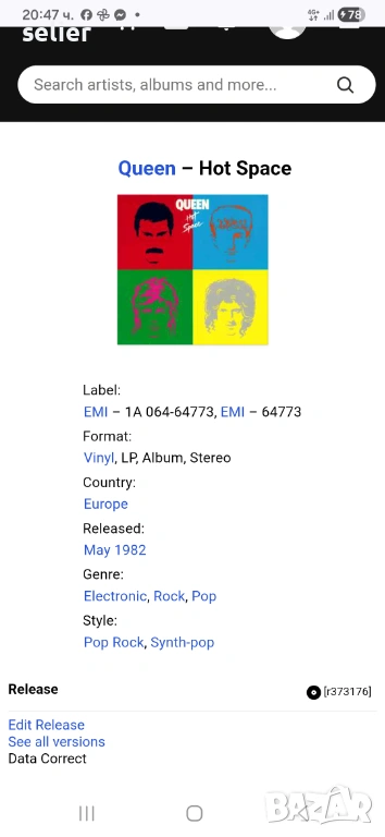 Queen – Hot Space Издание 1982г Състояние на винила:като звук едната страна е NEAR MINT,другата е V
