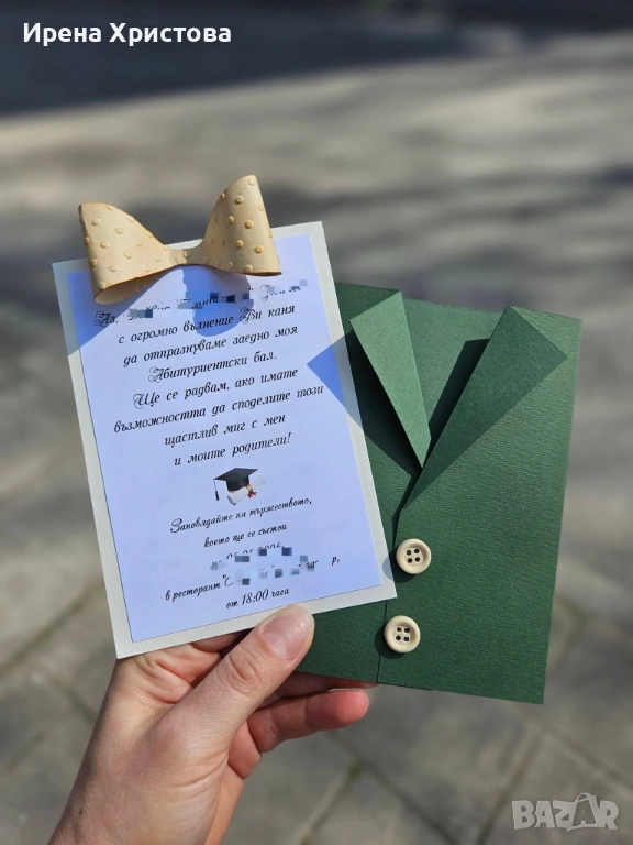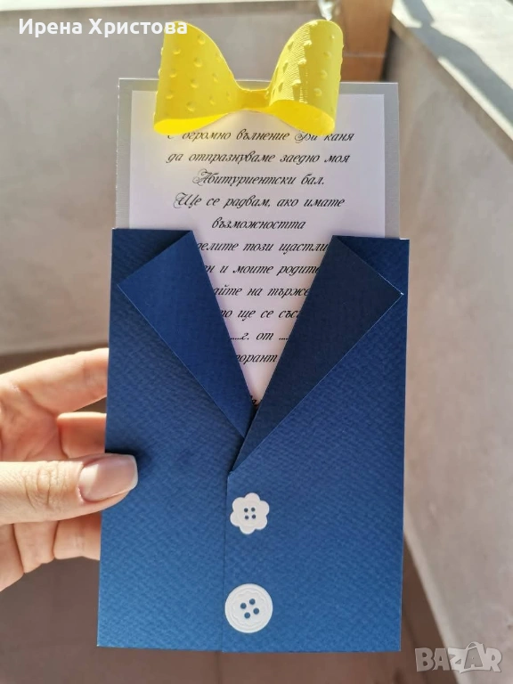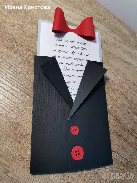 Изработвам стилни покани тип „костюм“, подходящи за различни поводи: