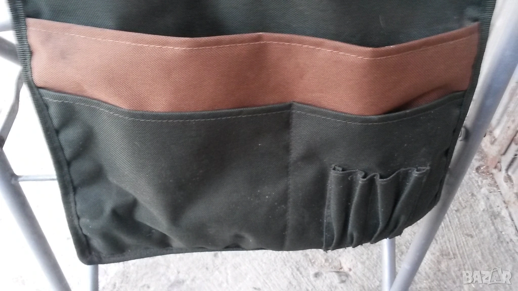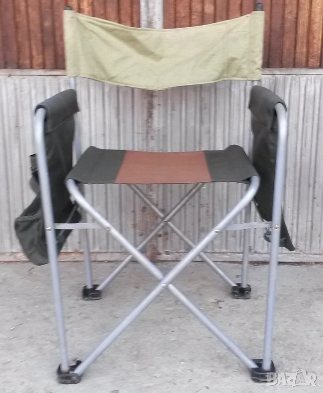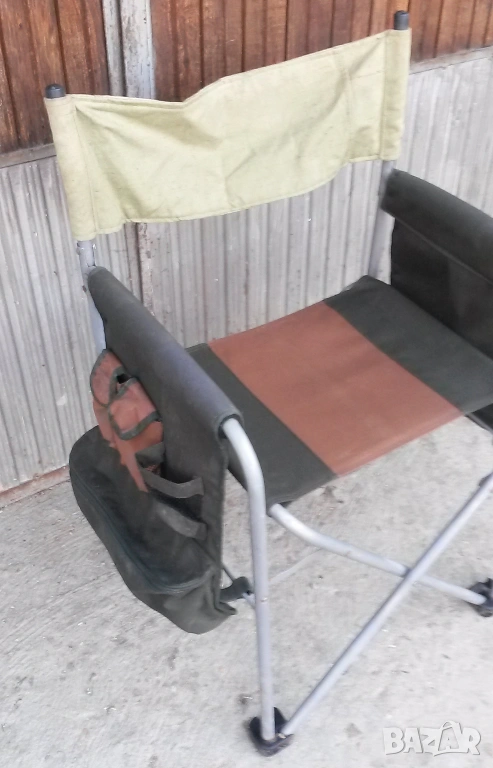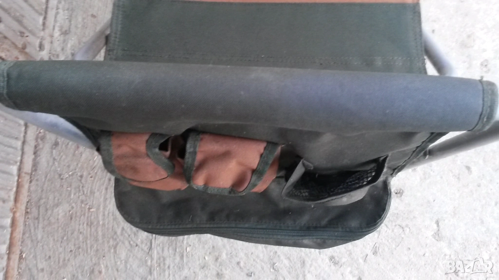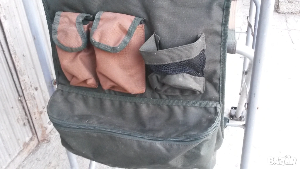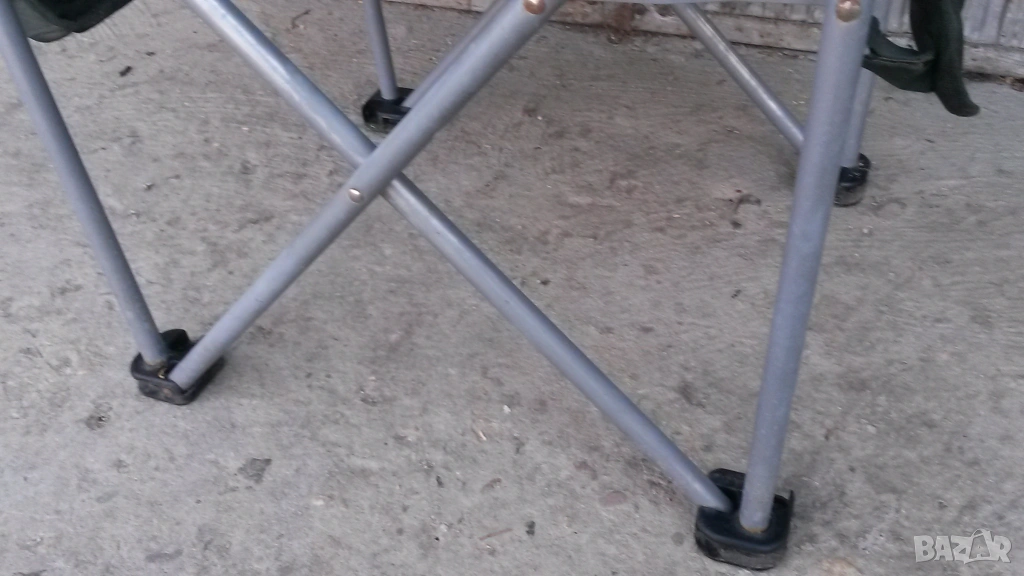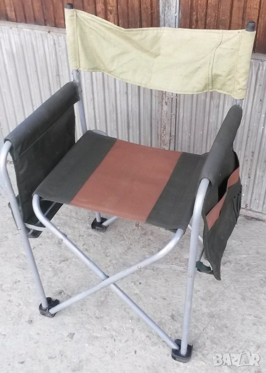 Платнените части на стола може да се изперат, защото са захабени и изцапани на места. Велкрото и ципът работят. Има малко ръжда по металните части. Като цяло е запазен.
