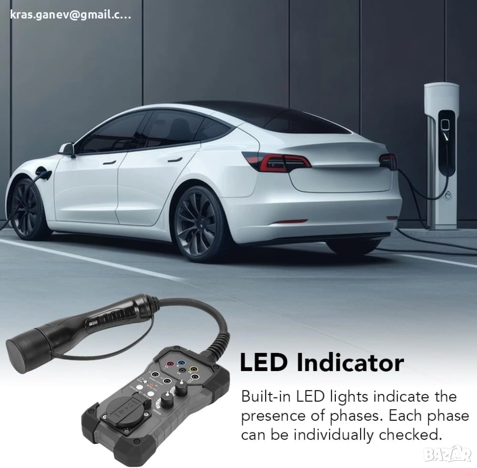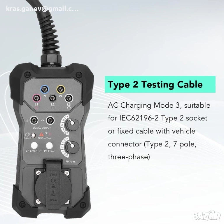 EVSE тестер Type 2 Gugxiom – адаптер за тестване на зарядни станции за електромобили