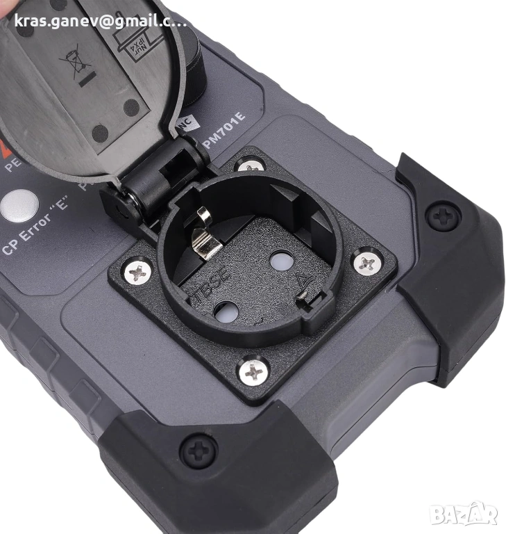 Продавам EVSE тестер Gugxiom с щепсел Type 2, предназначен за диагностика и тестване на AC зарядни станции за електрически автомобили (европейски стандарт).