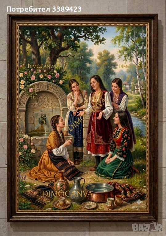 Професионален печат: Наситени цветове и релефна текстура на платното, които вдъхват живот на цветовете на носиите.