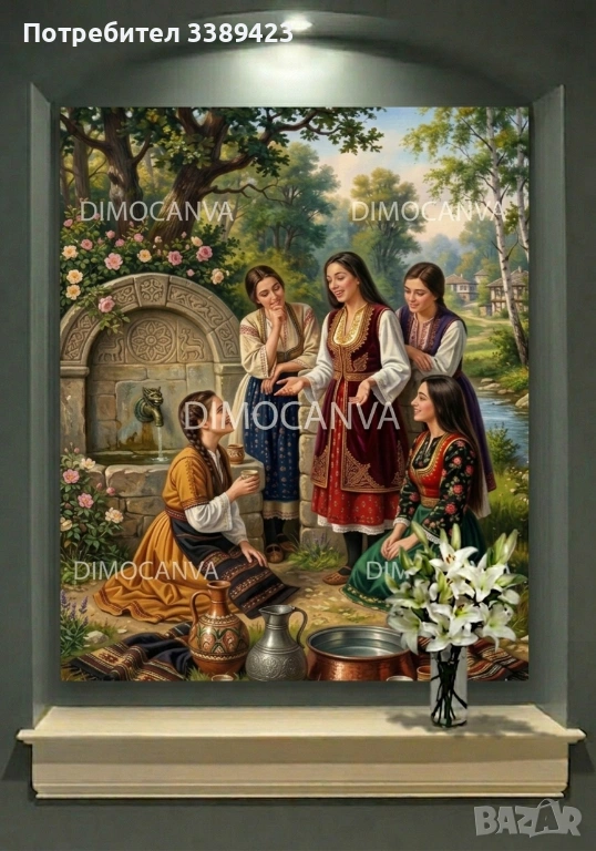 Търсите оригинален и стойностен подарък, носещ духа на българските традиции? Тази висококачествена картина върху канава, изобразяваща обичая Лазаруване, е символ на младостта, здравето и пробуждането на природата. Изключително подходяща за подарък за нов дом, декорация на битови помещения или за всеки, който цени българския фолклор.