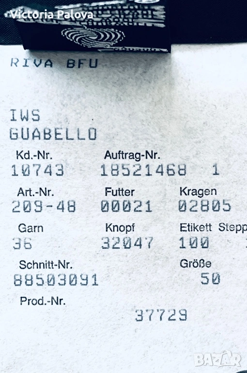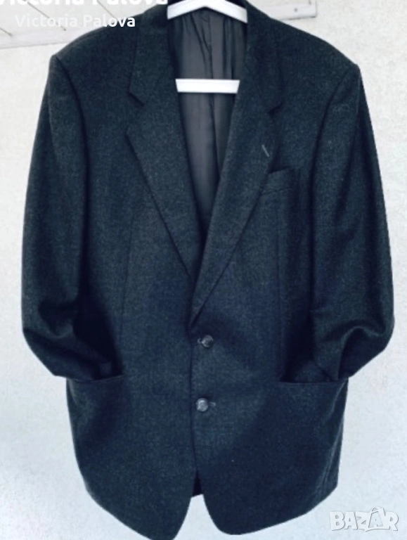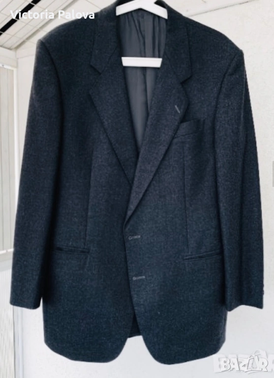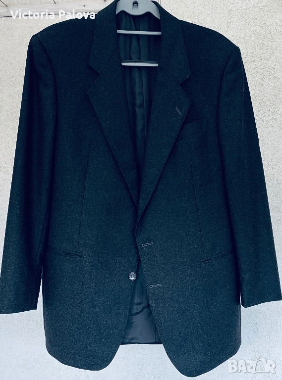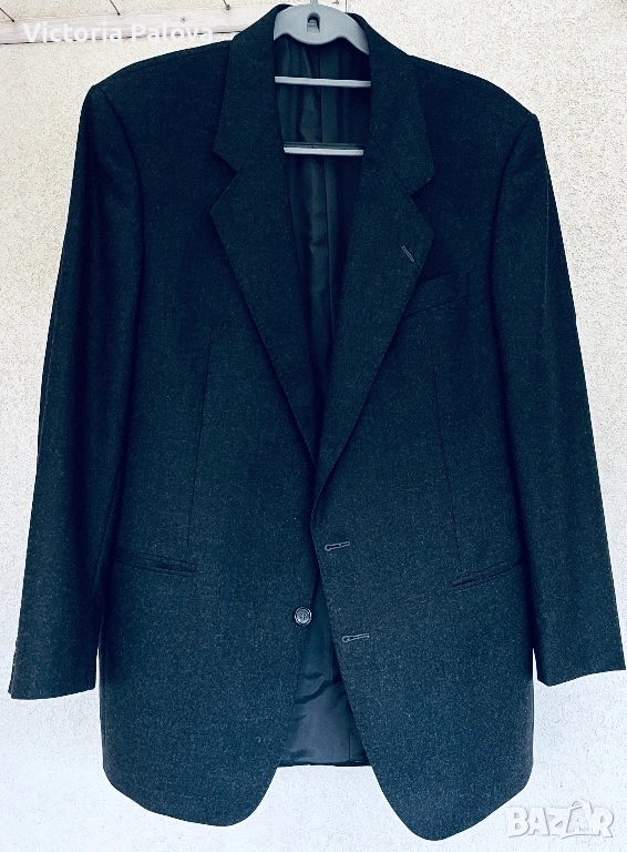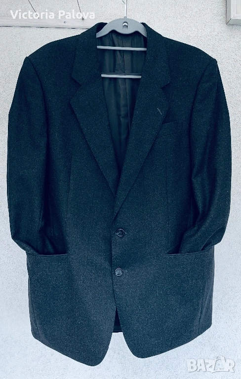 Сакото е конфекционирано през мюнхенския специализиран магазин Zechbauer Herrenausstatter. Кройката е класическа с умерено структурирани рамене, спокойна и удобна линия, която осигурява добра свобода на движение. Реалните измервания са: ширина на раменете 48 см, обиколка на гърдите 110 см, дължина 79 см, дължина на ръкава от рамо 61 см (от мишница 41 см). Вътрешната подплата е от гладък тъмен сатен, а всички детайли – копчета, джобове и шевове – са в перфектно състояние.