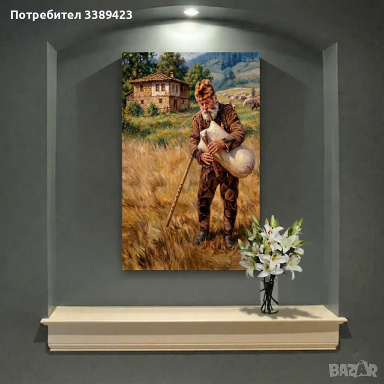 Търсите оригинален и стойностен подарък, който носи духа на българската планина? Тази висококачествена картина върху канава, изобразяваща гайдар, свирещ на гайда, е символ на традицията, силата на българския дух и непреходното фолклорно наследство. Изключително подходяща за подарък за нов дом, офис, механи или за всеки, който носи звука на гайдата в сърцето си.