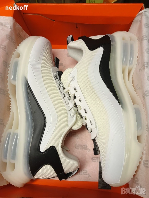 Стилен модел, съчетаващ класика и модерност. Удобна подметка, лек дизайн, подходящи както за ежедневно носене, така и за спорт.