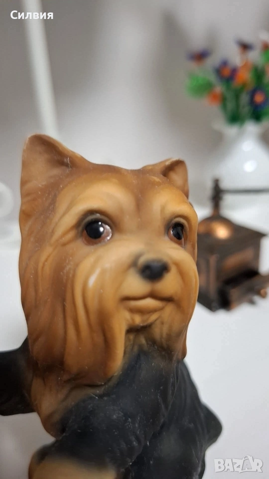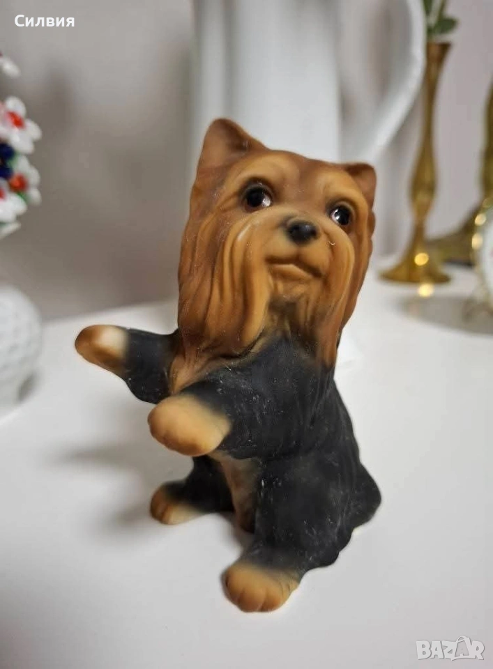 Тази очарователна, ретро фигурка на йоркширски териер, улавя игривия и оживен дух на породата. Със своите детайлни характеристики и симпатично изражение, тази фигурка е приятно допълнение към всяка колекция или закачлив декоративен щрих за вашето пространство. Височина 10см. Цена 1️⃣5️⃣€ 29,34лв ⊱❥─❥⊱💜✿⊱╮☆♪ ░L░o░V░e░❥─❥⊱💜✿⊱╮💜☆♪ღ💜ღ꧂ღ