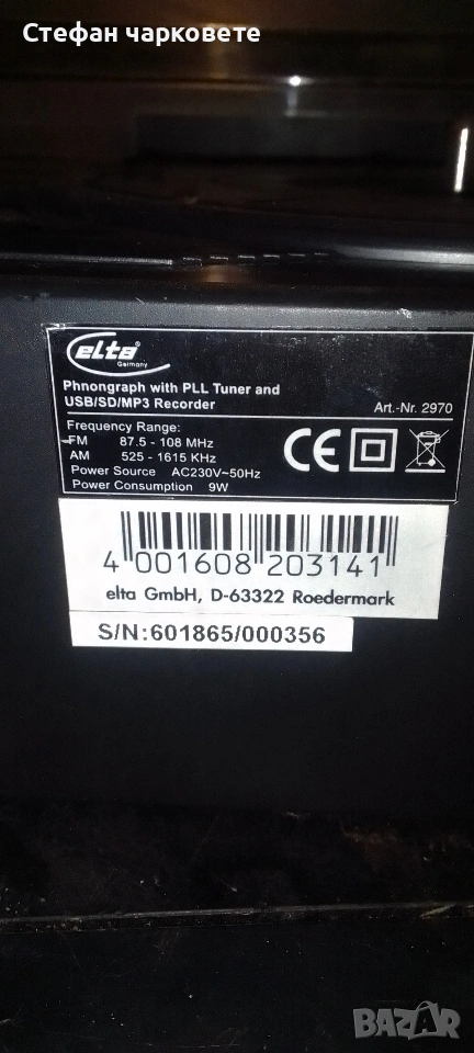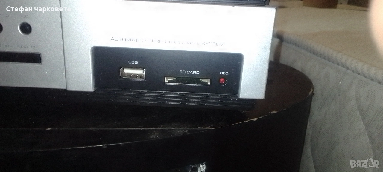 грамофон със радио тунер, усилвател и вградени говорители → Обява 54085281