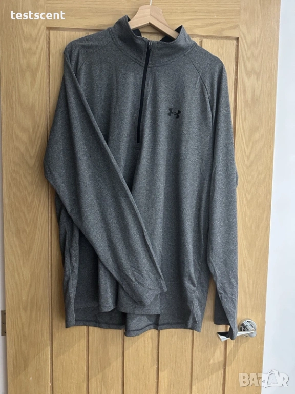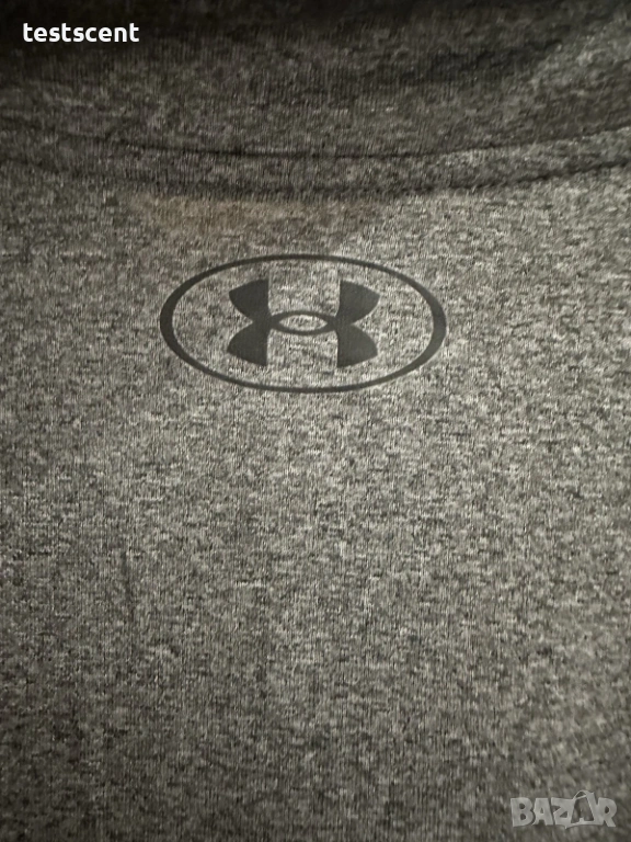 Продавам оригинална мъжка блуза на Under Armour в сив цвят (half-zip). Подходяща за спорт, фитнес или ежедневно носене.