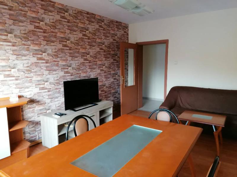 Луксозен апартамент, състоящ се от просторна всекидневна с кухненски бокс, три спални, баня и тоалетна отделно, две тераси. Жилището е напълно обзаведено, с всички необходими ел уреди.Имота е подходящ, както за семейство,така и за 4 студента.Three bedrooms, living room, kitchen, bathroom, toilet, terrace. Fully furnished home with white appliances - refrigerator, stove, washing machine, dishwasher, microwave, air conditioning.