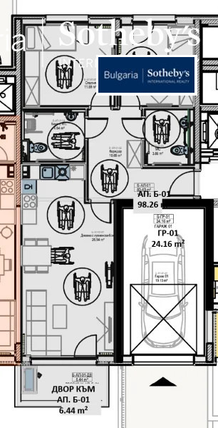 Към имота има възможност за покупка на паркомясто с цени от 22 080 евро без ДДС в подземен гараж с топла връзка към входа на сградата.