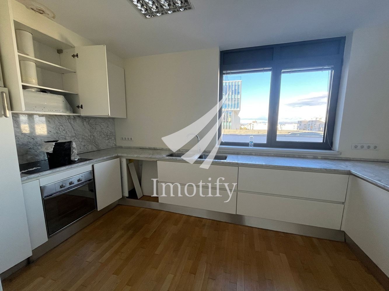 Офисът се състои от пет помещения, кухня, баня с тоалетна и отделна тоалетна, както и просторна тераса с площ от 120 кв.м, която е извън обявената квадратура.