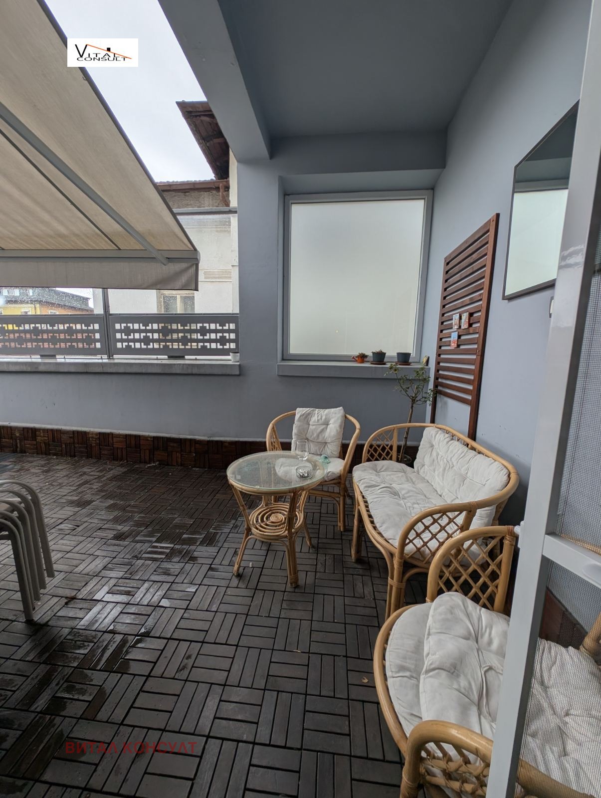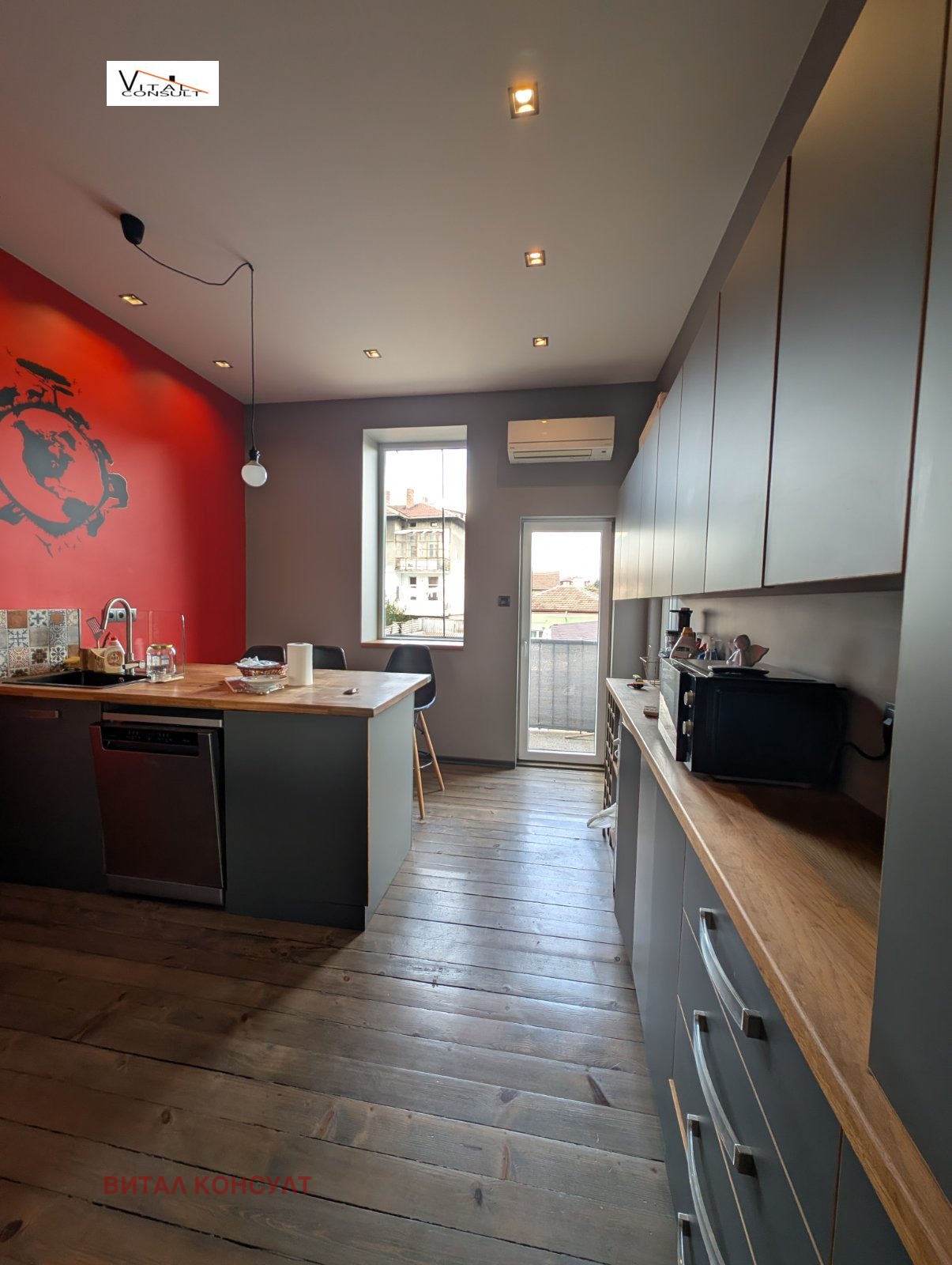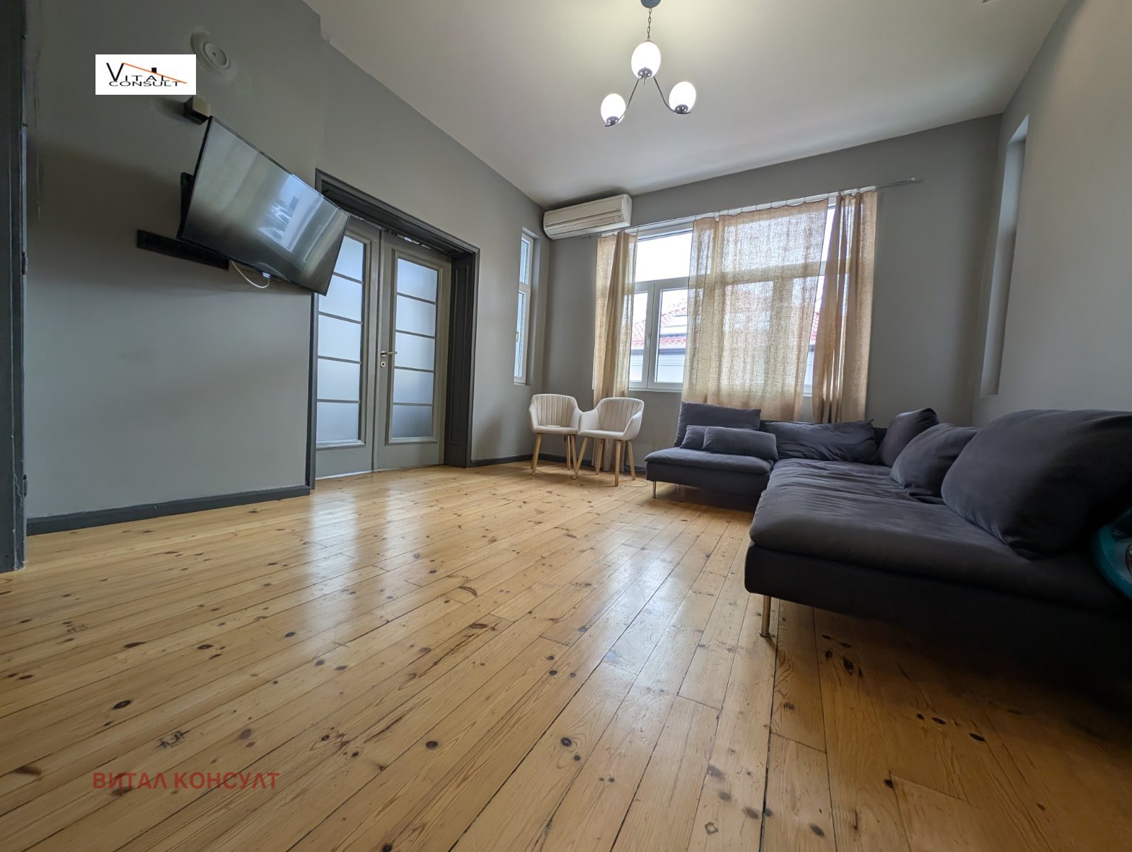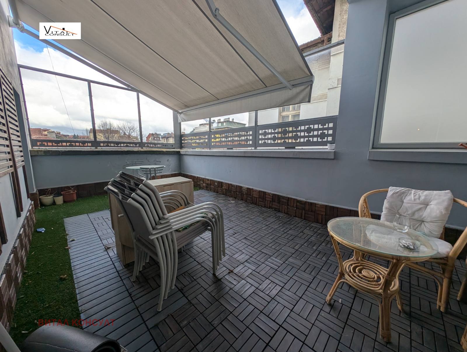 РЕАЛНА ОФЕРТА; Изцяло санирана сграда; Климатици; Аристократично жилище с високи тавани; Стилно изпълнение и обзавеждане; Самостоятелна кухня с вградена бяла техника, балкон, дневна в две части, трапезария, холна гарнитура и секция, две големи спални комплект, две бани с тоалетни, голяма тераса към вътрешен двор, антре с вграден гардероб; светло и просторно жилище с отлична локация - ул.Цар Симеон между ул.Веслец и ул. Сердика, в непосредствена близост до административния център на града, Метростанция и спирки на градски транспорт; Регламентирано парко място във вътрешен двор;