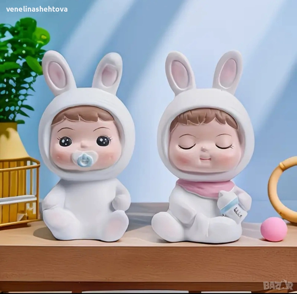 Бебе зайче момче момиче фигурки от смола декорация бебешко парти декорация торта → Обява 54085888