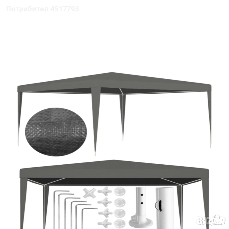 Сгъваема градинска шатра 3x3 м – Здрава метална конструкция, регулируема височина и защита от слънце → Обява 54085969