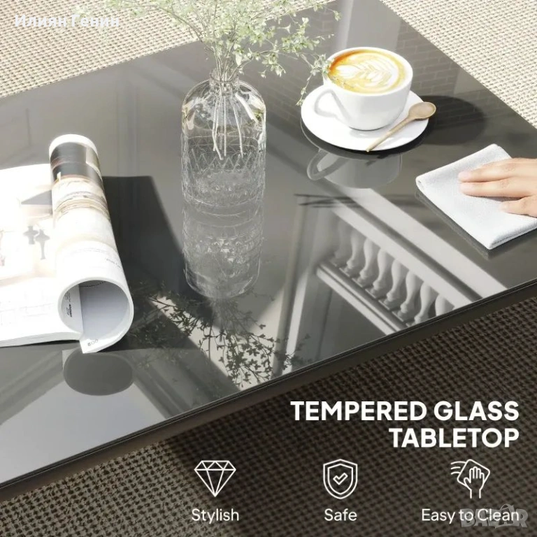 ✔ Плотът от закалено стъкло с дебелина 5 мм е безопасен и лесен за почистване.