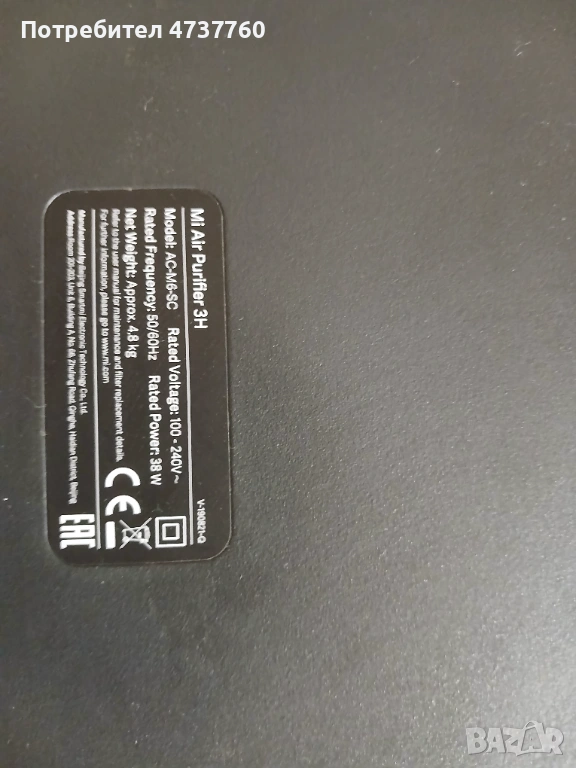Пречиствател за въздух Xiaomi/MI Air Purifier 3H - ориг. филтър на 72%