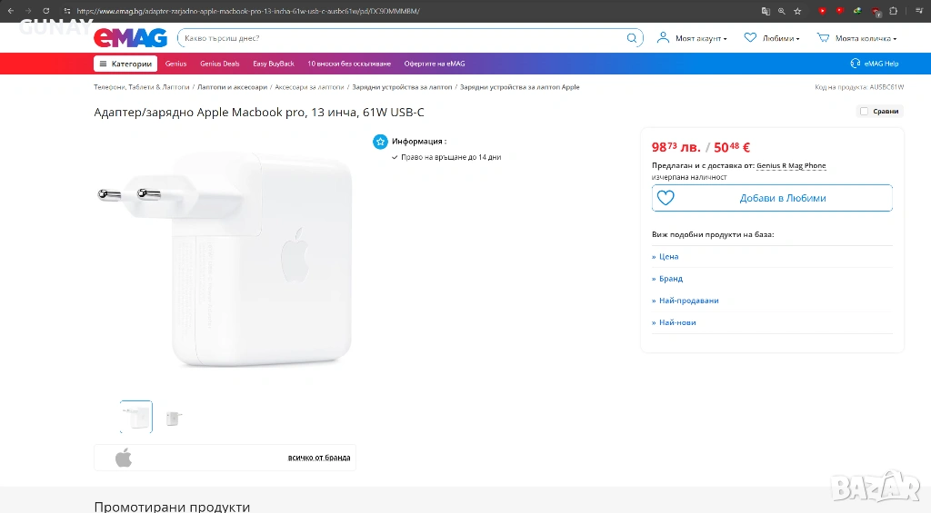зарядно за макбук, apple 61w, зарядно apple, зарядно usb-c, адаптер apple, macbook pro зарядно, a1718 зарядно, оригинален адаптер apple, type c зарядно, зарядно за лаптоп apple, macbook air зарядно, apple захранване, apple charger, macbook adapter, macbook type c, baseus 65w, anker 65w, ugreen 65w, зарядно за телефон, зарядно за таблет, lenovo usb-c зарядно, hp usb-c зарядно, dell type-c адаптер, asus зарядно type-c, samsung 45w, samsung 65w, huawei зарядно, xiaomi 67w, macbook pro 13 зарядно, macbook 15 зарядно, apple a1947, apple a2164, apple a2518