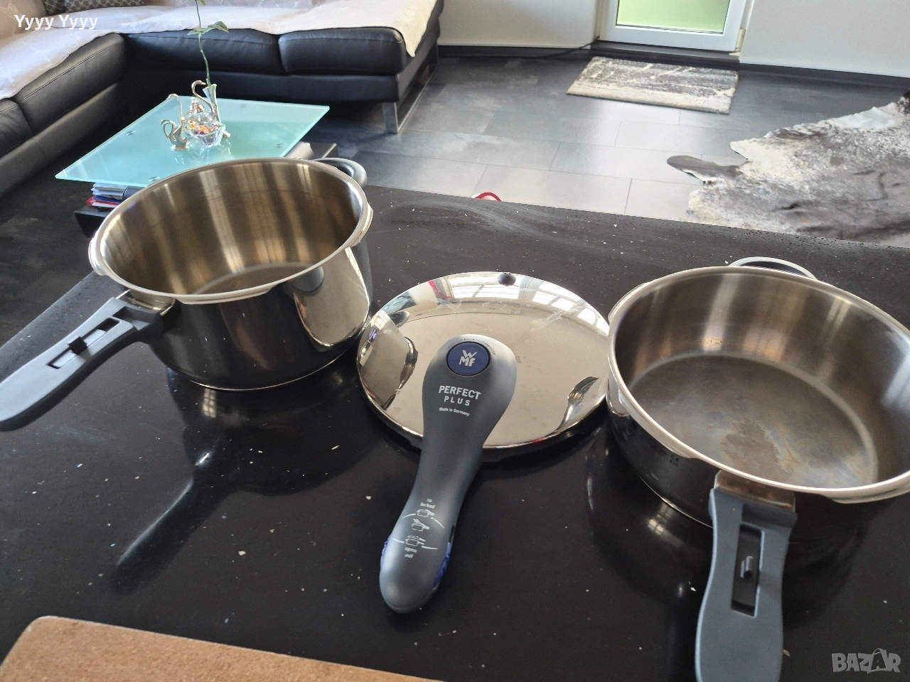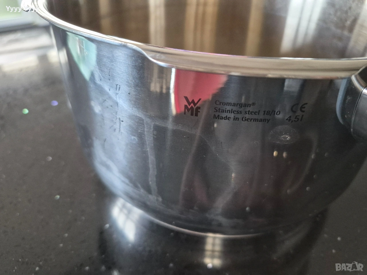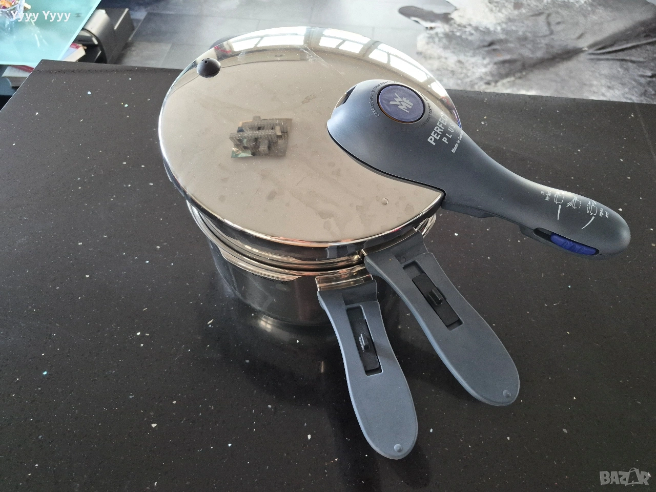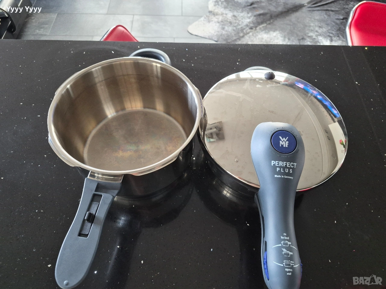 Немска тенджера за бързо готвене на марката WMF. Тенджерата е в добро състояние и може 8да се използва за приготвяне на различни ястия бързо и лесно.