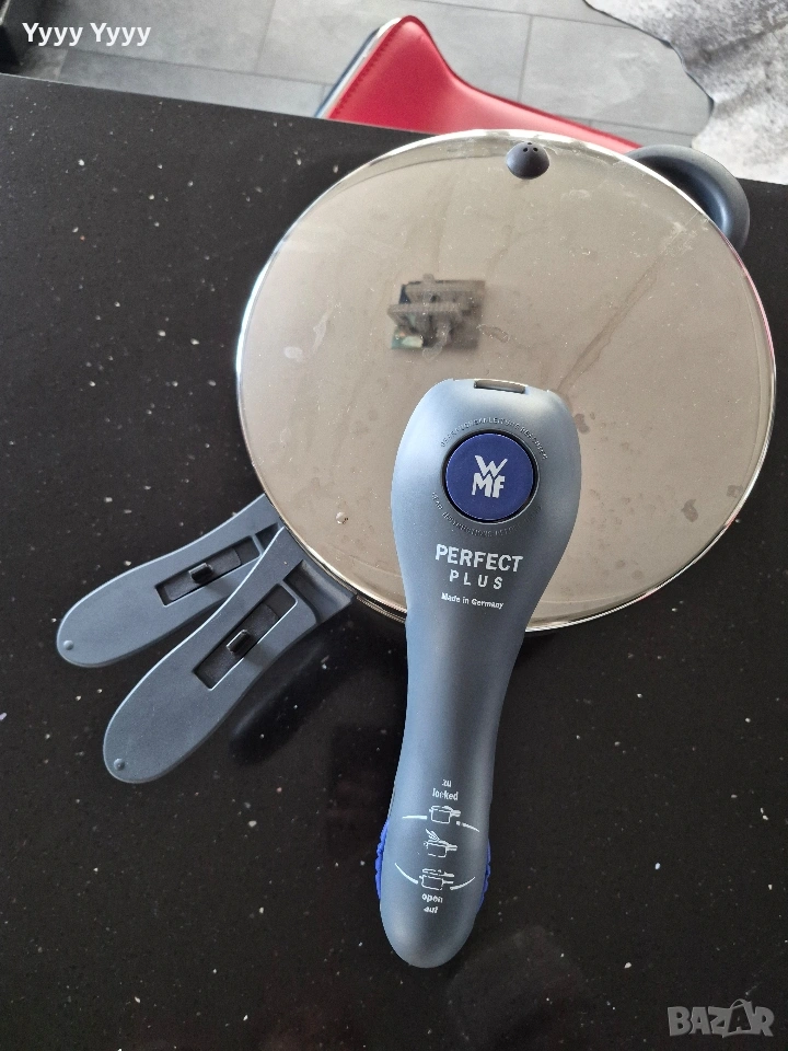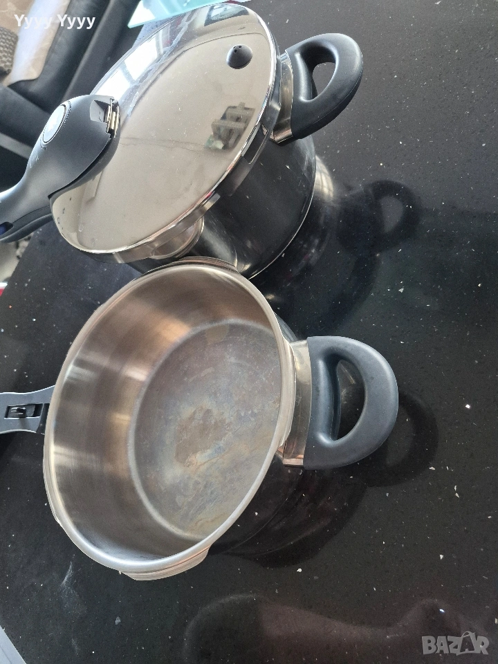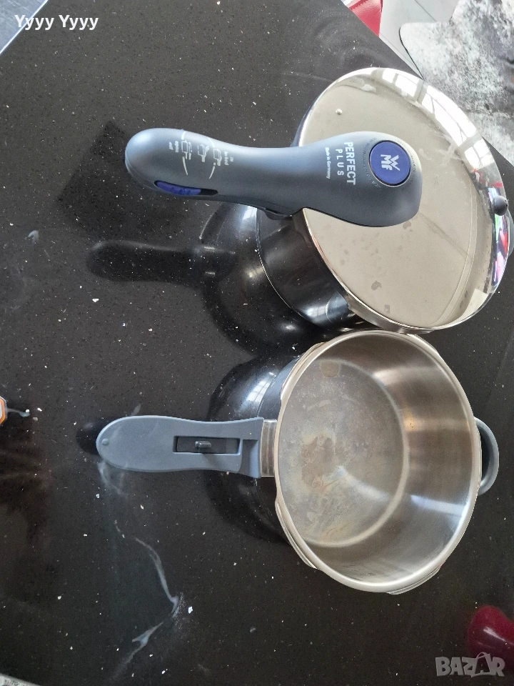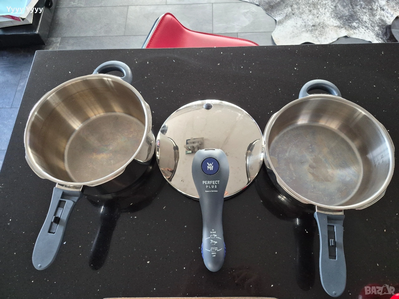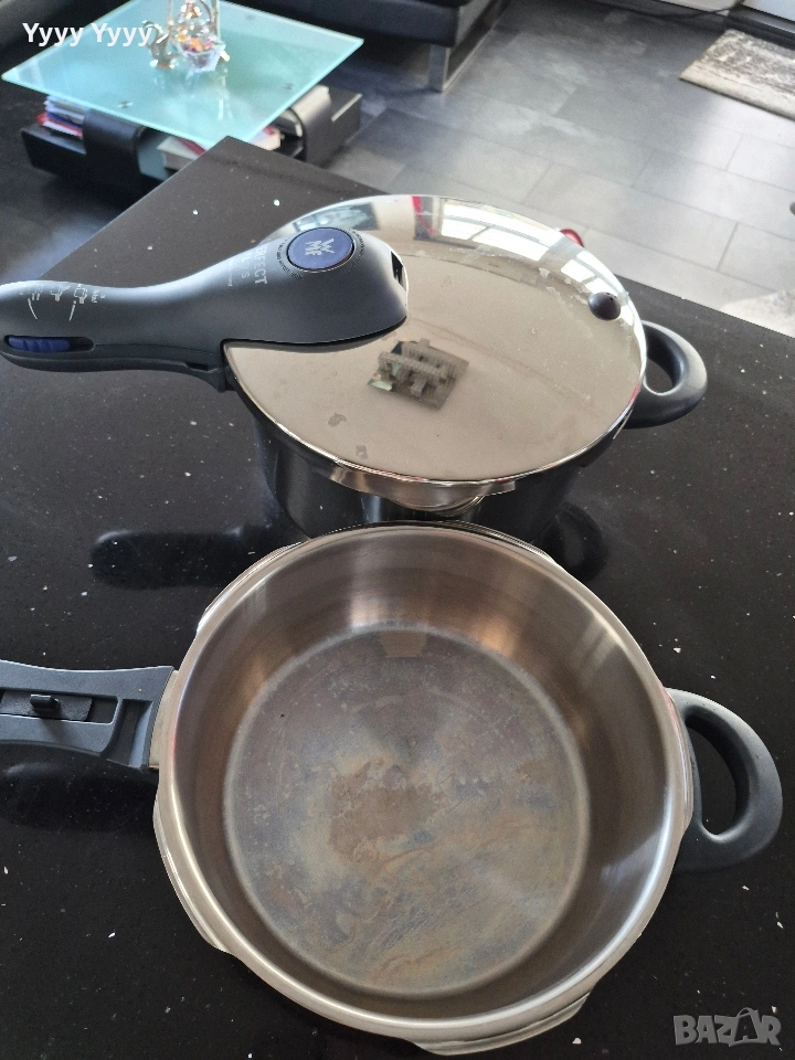 Немска тенджера за бързо готвене на марката WMF. Тенджерата е в добро състояние и може 8да се използва за приготвяне на различни ястия бързо и лесно.