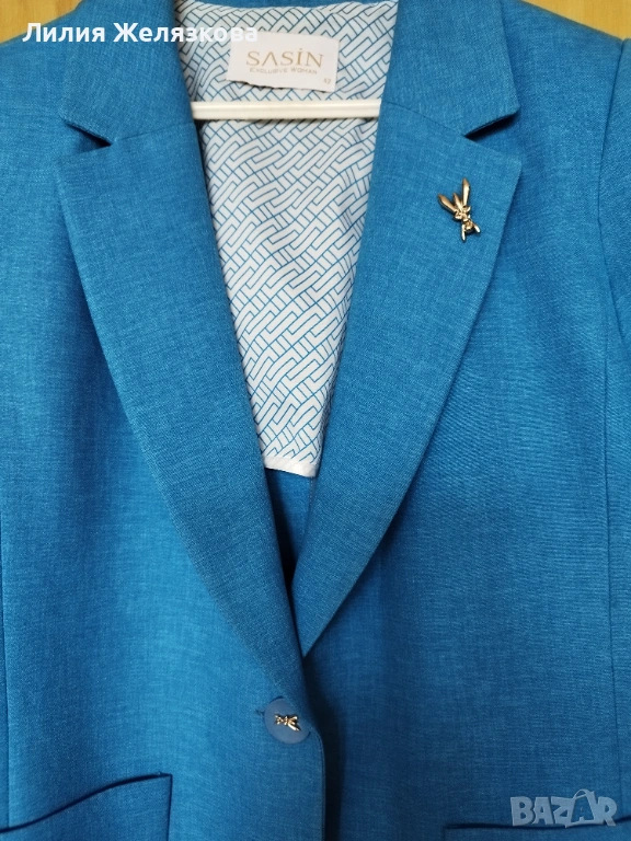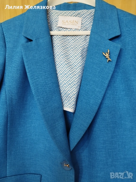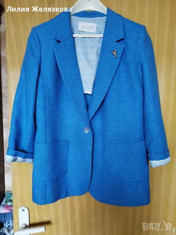 Ново сако на Sasin,42 размер, гръдна обиколка 100 см,дължина 65 см,стои елегантно,хубав син цвят.