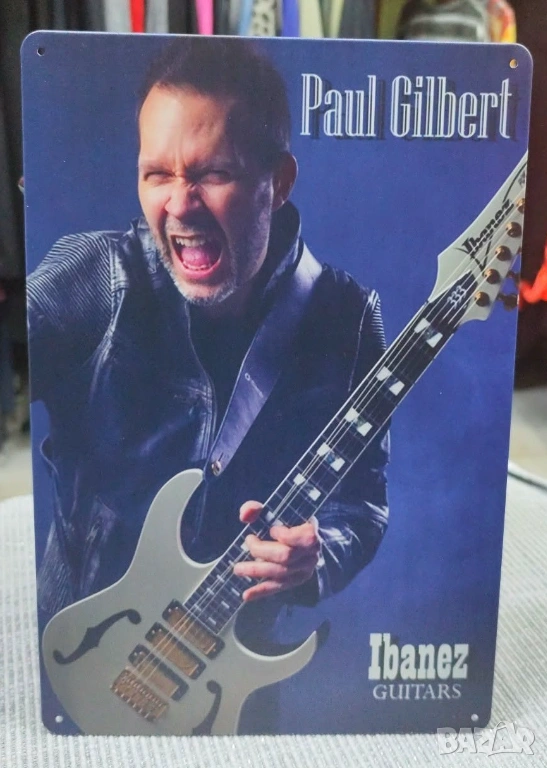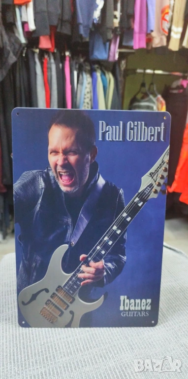 метална табела нa Paul Gilbert с една от неговите Ibanez signature китари