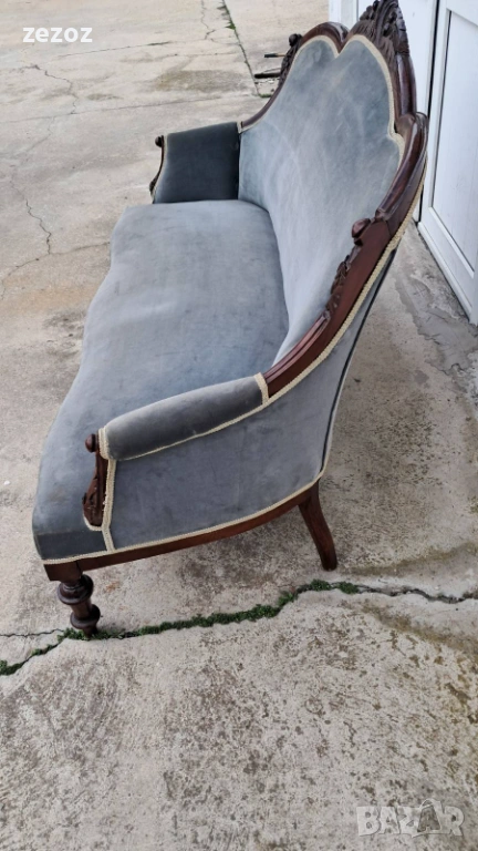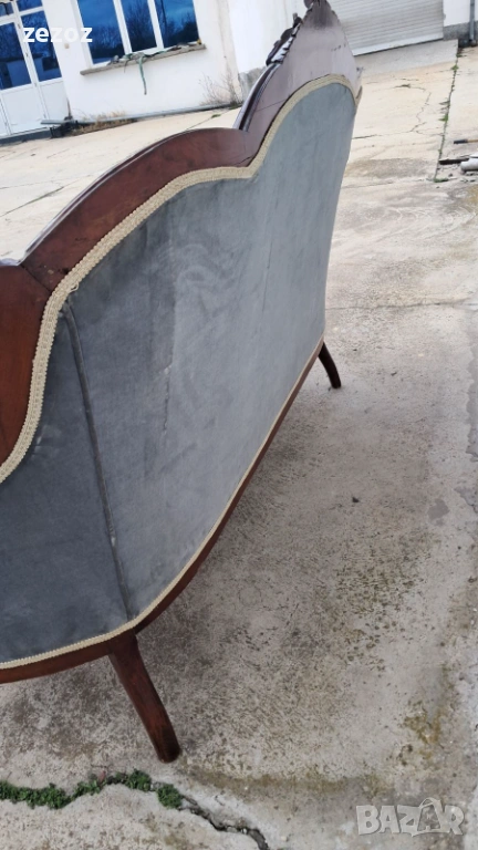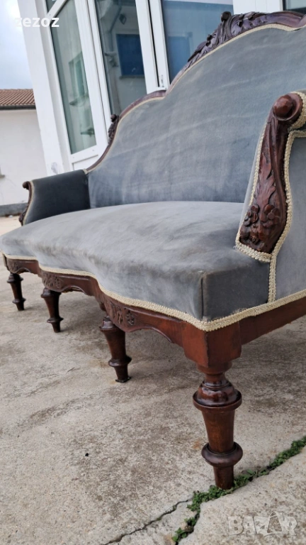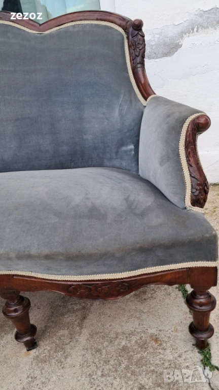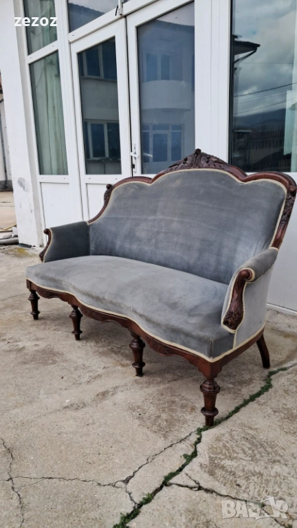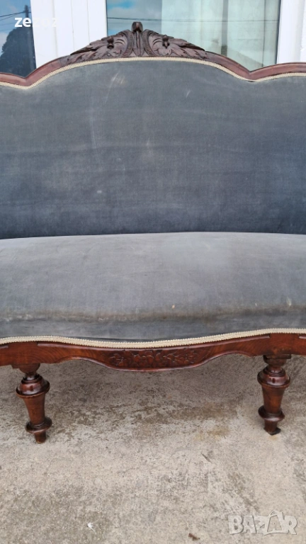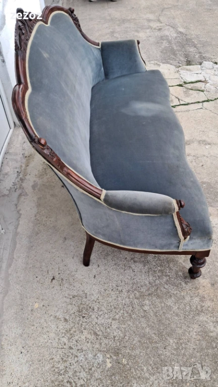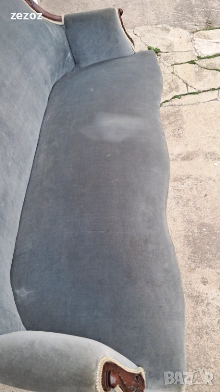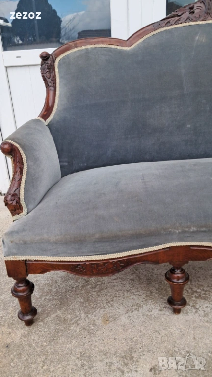Антикварен диван от началото на 20 век.Изработен от орехов масив в стил Луи Филип.По-компактен модел.Елегантни извивки характерни за френските мебели.Ръчна дърворезба.Дивана е конструктивно здрав,здрава дамаска със замърсявания,видима на снимките.Иска почистване.Предаване само след оглед на място.Размери0