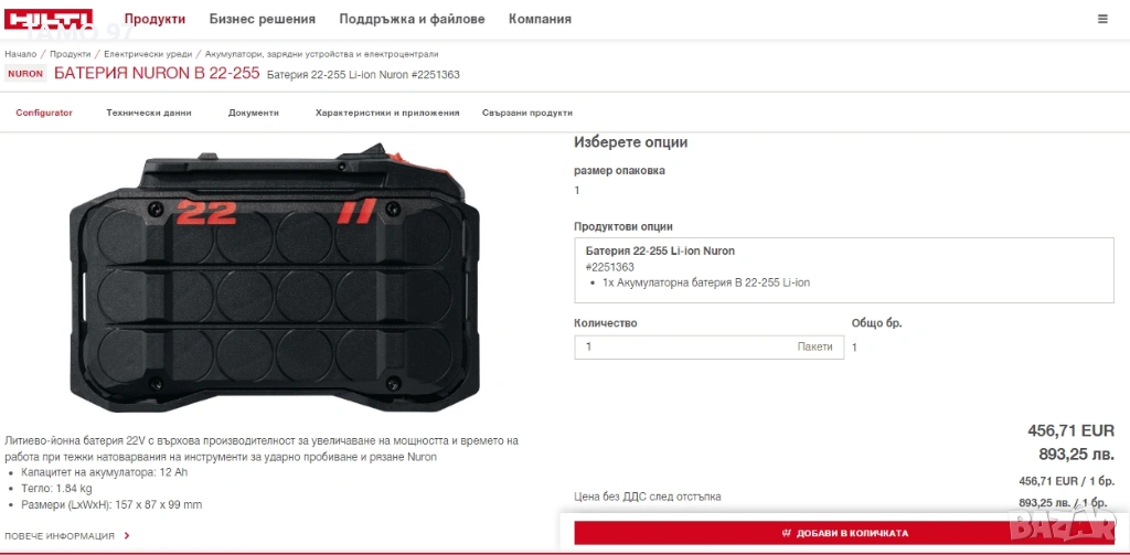 Hilti B 22-255 Li-ion Nuron - Мощна акумулаторна батерия 22V 12.0Ah 2024г